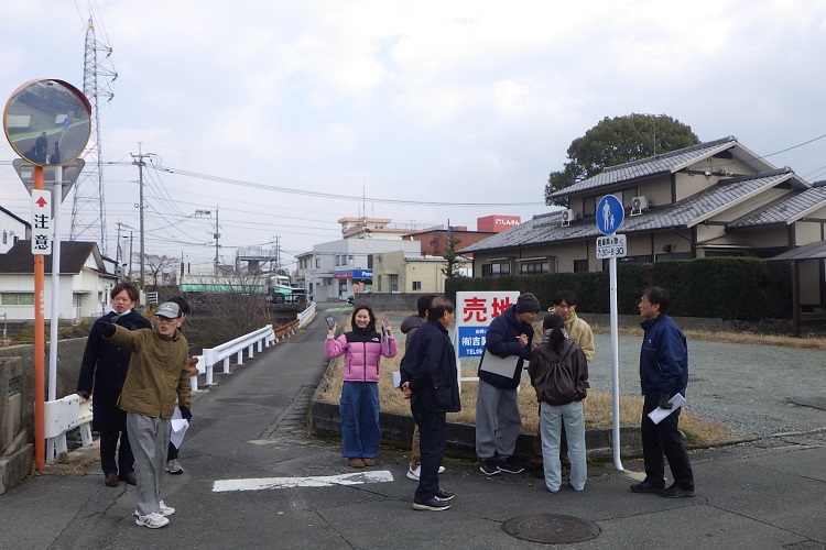防災まちづくりの取り組みの一環として、JR羽犬塚駅周辺地区の地域課題を可視化し、防災意識の醸成や向上を目的とし作成した 『安全安心マップ』 の更新・確認作業を行いました。
